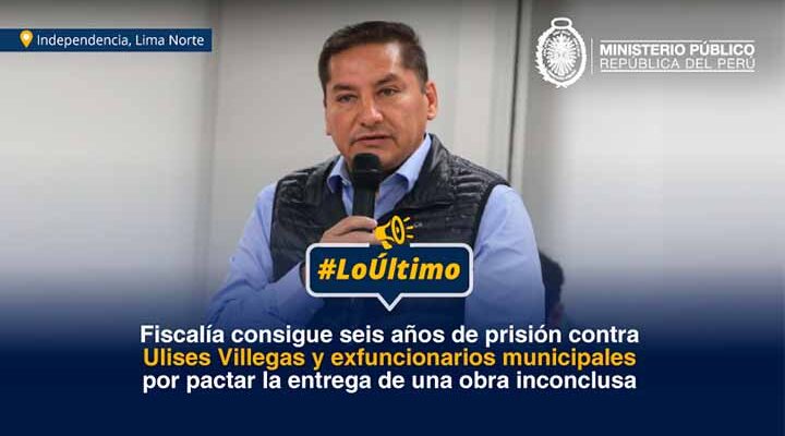 El Poder Judicial (PJ) condenó a seis años de prisión efectiva (con ejecución diferida) a Ulises Villegas y a cuatro exfuncionarios de la Municipalidad Distrital de Independencia, al encontrarlos responsables del delito de colusión agravada por la entrega irregular de una obra pública inconclusa.